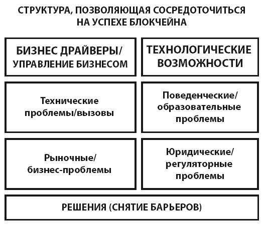 Давайте посмотрим на блокчейн в целом в структурной перспективе «Катализатор – Барьер – Решение». Эта структура состоит из точного описания катализаторов: бизнес-драйверов и вспомогательных технологий. Затем мы можем обозначить барьеры, которые включают технические, деловые/рыночные, юридические/нормативные и поведенческие/образовательные проблемы. И наконец мы несем ответственность за преодоление каждого из этих барьеров один за другим.