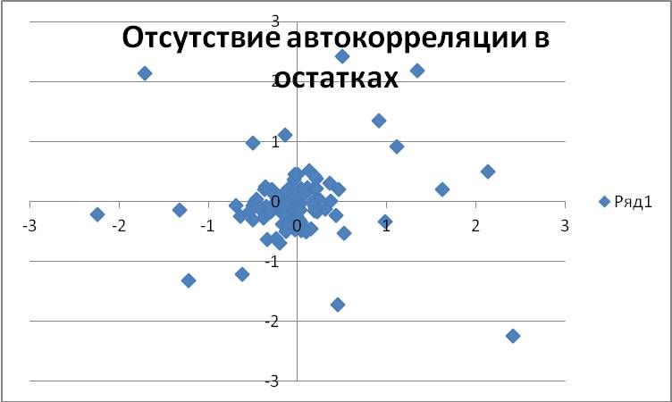 Если же на графике остатков налицо круговой разброс точек в хаотичном порядке, то тогда можно сделать вывод об отсутствии автокорреляции или ее близости к нулю – см. рис. 2.7.
