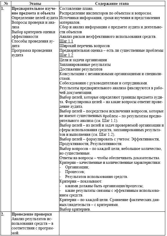 Этапы проведения аудита эффективности отражены в таблице 6.1.