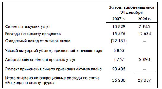 Примечание: В отчетности Газпрома за 2007 г. при переводе допущена ошибка. Следует читать именно «непризнанная стоимость прошлых услуг», а не «текущих». В английском варианте отчетности Газпрома все в порядке: написано past service cost. Такие казусы перевода иногда встречаются в отчетности даже очень крупных компаний. Обычно изначально финансовая отчетность по международным стандартам финансовой отчетности крупных российских компаний составляется на английском языке, а потом уже отдается переводчикам. При переводе могут случаться казусы. Поэтому важно понимать и английские термины, так как первичной является именно англоязычная версия отчетности.