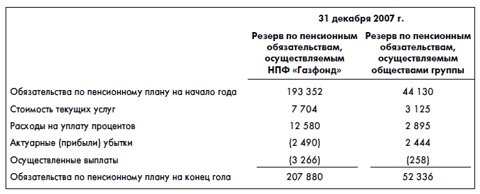 Давайте посмотрим, за счет чего он образовался. Прежде всего обратите внимание, что у Газпрома есть пенсионные обязательства, которые выполняются с помощью НПФ «Газфонд», а есть и прочие пенсионные обязательства. Так, у Газпрома есть пенсионное обязательство по своему плану в размере 207,8 млрд руб. относительно НПФ «Газфонд» и в размере 52,3 млрд руб. относительно прочих пенсионных планов Газпрома. Вот как сформировались эти обязательства: