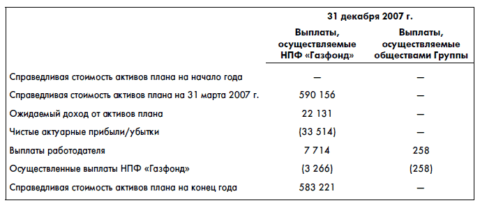Газпром также показывает и формирование справедливой стоимости активов плана: