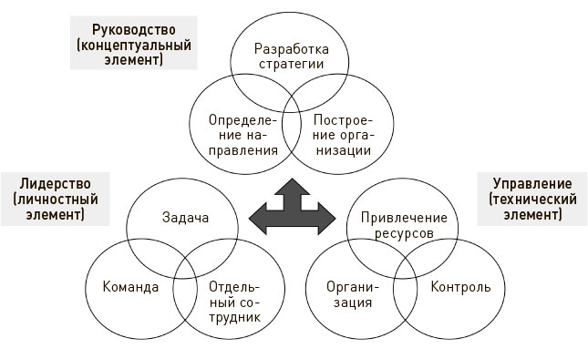 Лидерство — это деятельность морального и эмоционального характера. Работа лидера — мотивировать и по возможности вдохновлять последователей, чтобы они шли в нужном направлении и лучше выполняли свои функции. Лидеры должны уметь формировать команду, поддерживать ее работу, удовлетворять потребности ее членов и обеспечивать их развитие. Кроме того, они должны своевременно, в зависимости от ситуации, переключаться с одного аспекта деятельности на другой. Если не уделять внимания команде, она распадется; если не уделять внимания задачам, они не будут решены; если не удовлетворять потребности членов команды, они проявят недовольство. Успешные лидеры поддерживают между этими сферами правильный баланс[316].