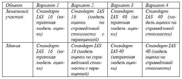 Вариант 1. Вся недвижимость оценивается по затратной модели и включается в состав статьи «Основные средства» (IAS 16) в отчете о финансовом положении. Амортизация обязательна к применению.
