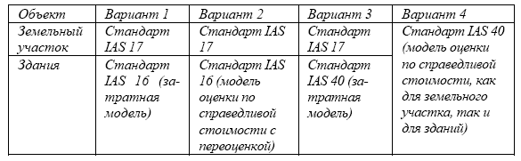 Здания должны быть учтены согласно стандарту IAS 16 (варианты 1 и 2), если они используются владельцем, или согласно стандарту IAS 40 (варианты 3 и 4), если они сдаются владельцем в аренду.