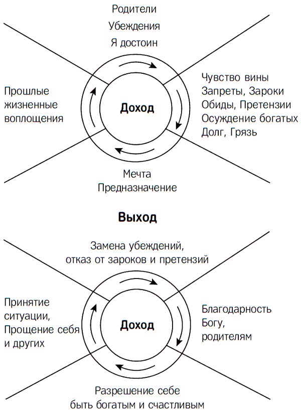 Родители и общество со своими кармическими задачами еще усиливают ощущение вины – чувством долга, совести (про это много говорится в главе «Очищение» в моей третьей книге). Если человек и в этой жизни совершил проступок, за который сам себя бессознательно наказывает, то считает себя еще менее достойным. Один оценивает себя в 50 000 рублей, второй считает, что не достоин получать 500 000, а кто-то полагает, что его потолок – 5 000 000. Разница в суммах, а суть одна: «Я не достоин лучшего».