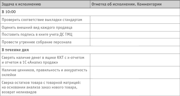 В «Магии Золота» мы для своих директоров составили «шпаргалку», чек-лист ежедневных дел. Выглядели они так: