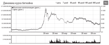 2013 года, когда биткойн ненадолго превзошел в цене унцию золота (1240 долларов)[32]. Этот пик был вызван комбинацией воздействия нескольких факторов. Значительный рост спроса был обусловлен банковским кризисом на Кипре (март 2013 года). Кроме того, рост курса подстегнула высокая активность на криптовалютном рынке Китая, которая продолжалась до 5 декабря 2013 года. В этот день правительство страны запретило организациям (не физическим лицам) использовать биткойн, после чего курс упал[33].