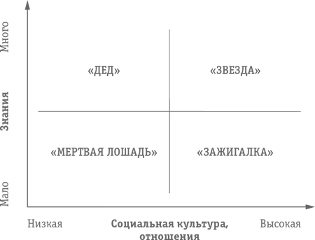 С «мертвыми лошадьми» дело обстоит сложнее. В периоды кризиса с персоналом с ними можно поработать – использовать как охранников товара или попытаться обучить и воспитать. Но по моему опыту лучше расставаться сразу и не тратить зря время и силы. Из ничего и выйдет ничего. Итак, «зажигалок» растим и обучаем, с «мертвыми лошадьми» расстаемся, «дедов» воспитываем и продвигаем по служебной лестнице, «звезд» время от времени опускаем с небес на землю.