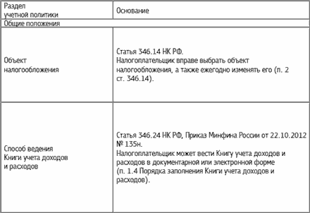 Содержание учетной политики налогоплательщиков с объектом налогообложения «доходы» и тех, кто выбрал объектом «доходы минус расходы», существенно различается. Но в то же время есть и общие моменты.