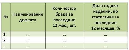 Данные состоят из вида дефекта и частоты его обнаружения в виде процента по отношению к количеству годных изделий (см. таблицу 10.29).