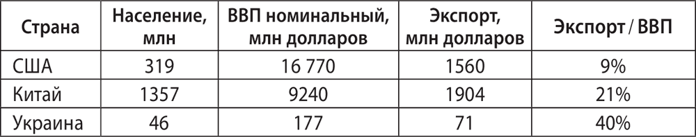 Насколько же экспортоориентированной согласно этому показателю является, например, Украина? Давайте сравним с такими странами, как Китай и США[2].