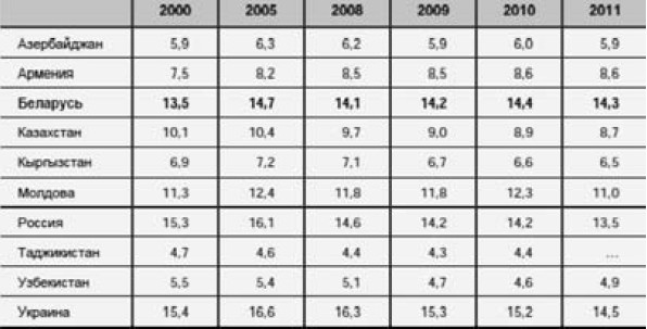 (Источник: Беларусь и страны СНГ: Стат. сб. / Белстат. – Мн., 2012. – С. 14.)