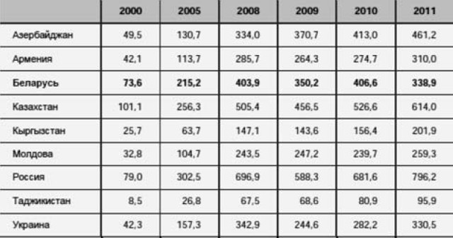 Как и в предыдущие годы, Белоруссия имела серьезные выгоды от взаимодействия с Россией. Экономический рост в РБ в значительной мере был обусловлен увеличением спроса в России на белорусские товары, отличавшиеся относительно низкими ценами при приемлемом качестве. Важным фактором роста экономики РБ в 2000-е гг. было получение, в соответствии с интеграционными соглашениями, российских энергоресурсов по льготным ценам, благодаря которым, по данным белорусского Института приватизации и менеджмента, только за 2004–2009 гг. республика сэкономила 38 млрд долл.[264]