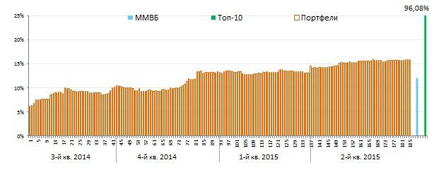 Пример. Отчет MARQ по фонду акций по итогам 2 квартала 2015 года на годовом интервале.