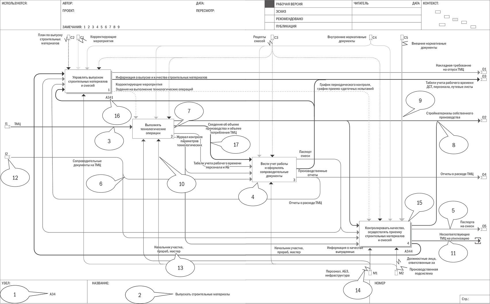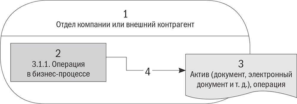 Первое – все операции, осуществляемые тем или субъектом, помещаются внутри очерченной области. Размещение операции на границе двух очерченных областей недопустимо, так как непонятно, кто именно за нее отвечает. И если такое в компании есть (а такое случается нередко, что и побуждает к формализации процессов), то нужно выделить промежуточный актив – результат работы одного подразделения, который передается в другое подразделение. В этом случае актив размещается именно на границе двух очерченных областей. Если же он размещается внутри очерченной области, то это внутренний продукт того или иного подразделения.