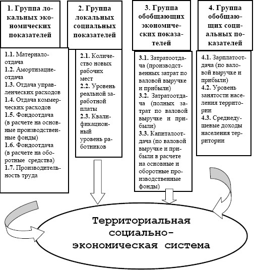 В группу локальных социальных показателей (рис. 53) входят абсолютные показатели, которые характеризуют внутреннюю эффективность функционирования сферы малого бизнеса (отдельного предприятия):