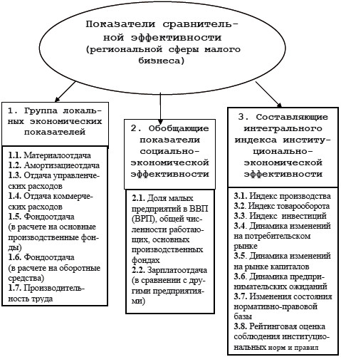 Показатели сравнительной эффективности функционирования сферы малого бизнеса