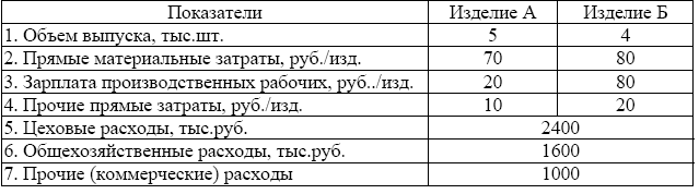 Пример. Предприятие выпускает 2 вида изделий – А и Б. Определите полную себестоимость единицы каждого продукта.