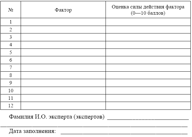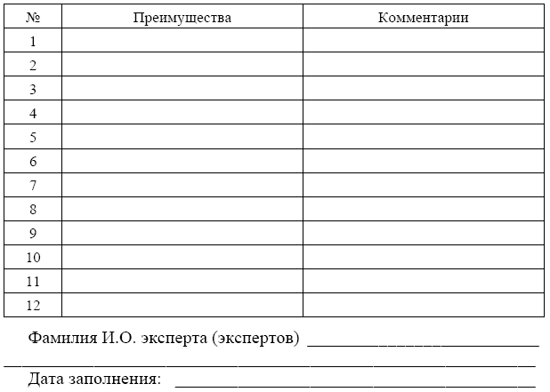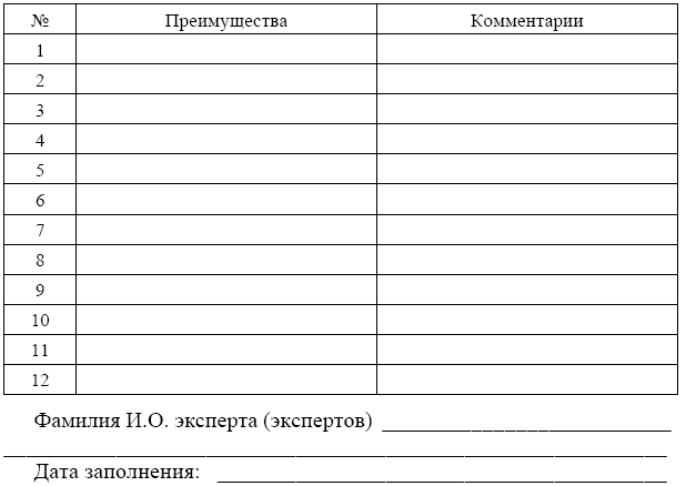 Каждый участник семинара получает для заполнения бланк, соответствующий изучаемой проблеме: