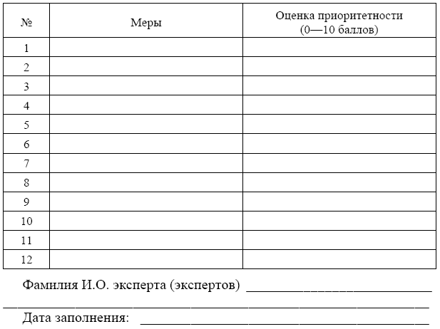 3. Работа слушателей в подгруппах ведется в индивидуальном режиме (около 10 минут), результаты индивидуальных мнений записываются в предложенные бланки.