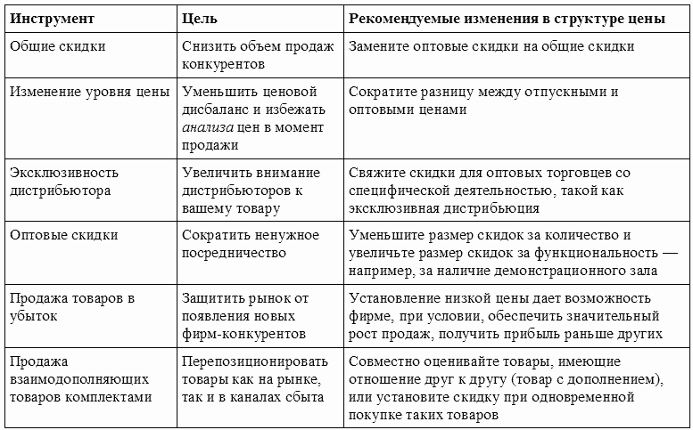 При разработке тактических ценовых решений практики не всегда учитывают тот факт, что применение, к примеру, одного из наиболее часто используемых тактических инструментов — скидок сопряжено со значительными рисками. Несколько лет назад крупный американский производитель сигарет предложил оптовым торговцам значительную скидку на свою продукцию. В результате оказалось, что конечные потребители не получили ожидаемой выгоды от снижения цен, поскольку оптовики, воспользовавшись скидками, предоставленными производителем, в свою очередь, не снизили цены для розничных торговцев, приобретавших у них товар. Итог непродуманной ценовой тактики: конечные потребители не заметили каких-либо изменений цен, и, следовательно, производителю, понесшему значительные убытки, не удалось увеличить свою долю рынка.