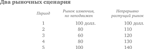 Усреднение долларовой стоимости приносит на нерастущем, но очень изменчивом рынке более высокие результаты, чем в условиях бурно растущего рынка. Оцените два следующих сценария.