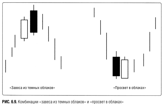 На рис. 6.9 показаны комбинации «завеса из темных облаков» и «просвет в облаках». Поскольку обе они очень информативны, обязательно запомните их.