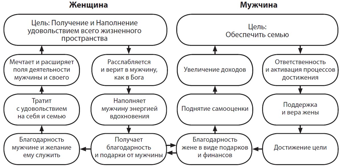 Когда женщина испытывает наслаждение и счастье от отношений, ее мужчине начинает везти, перед ним открываются все двери, удача начинает следовать за ним по пятам. Потому что в счастливом и удовлетворенном внутреннем состоянии силой своего творческого мышления женщина благословляет мужа на успех и привлекает в его жизнь благоприятные события. Через женщину к мужчине устремляется либо поток благости, удачи и процветания, либо поток разрушительной силы.