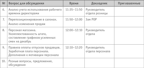 Приглашая директоров в офис на собрание, мы всегда заблаговременно отправляли им в магазины по электронной почте повестку предстоящей встречи. Выглядит она примерно так: