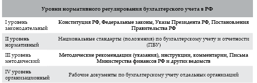 Нынешняя система нормативного регулирования бухгалтерского учета включает в себя четыре уровня, на каждом из которых регулирование осуществляют организации, наделенные соответствующими полномочиями.
