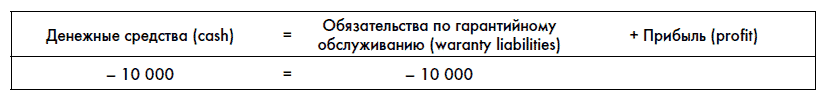 Обратите внимание, что эта операция не влияет на прибыль текущего периода. Такой подход позволяет более точно применять принцип соответствия. В данном случае прибыль компании от продажи автомобиля не будет завышена, так как мы сразу в момент регистрации продажи уменьшим ее на сумму ожидаемых гарантийных обязательств. Гарантийные расходы, хотя фактически и возникают через какое-то время после продажи, на самом деле являются следствием этой продажи. Поэтому и расходы по ним должны влиять на прибыль не будущих, а текущего периода, т. е. периода, когда компания продала автомобиль.