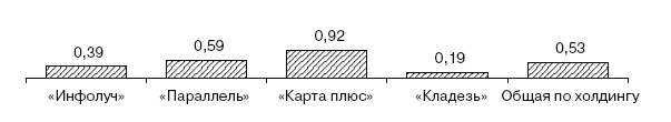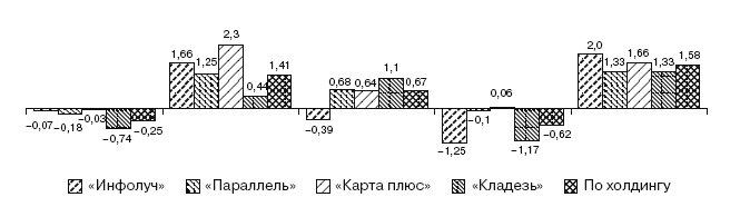 Из рис. 1.21 следует, что выше всего качество новостей у той компании, у которой самое низкое качество неинформационного вещания (ТРК «Карта плюс»), а ниже всего – у той компании, у которой качество неинформационного вещания самое высокое. Это может свидетельствовать о неверном и неравномерном распределении ресурсов, в результате чего более качественное производство неинформационных программ приводит к более низкому качеству производства информационных и наоборот.