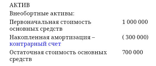 Ниже приведена выжимка из баланса, отражающая суть контрактивных счетов: