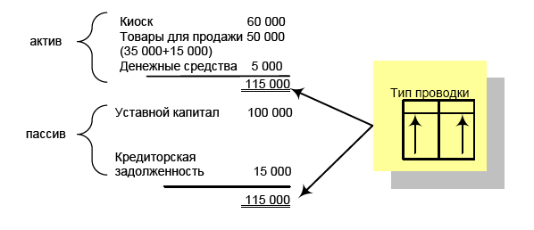 Увеличение активного счета – через дебет, пассивного – через кредит