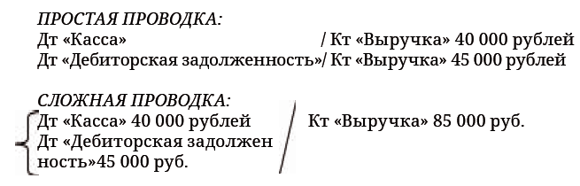 ПРОСТОЙ ПРОВОДКЕ всегда соответствует одна и та же сумма в дебете и кредите.