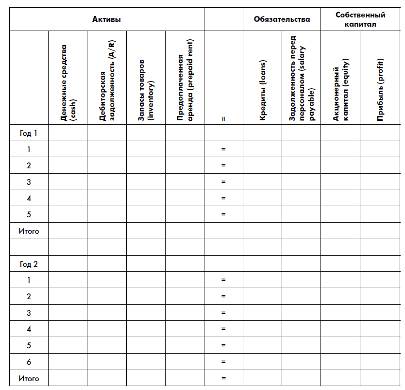 Попробуйте самостоятельно отразить влияние каждой из этих операций на основное равенство бухгалтерского учета и заполнить отчет. А затем мы с вами рассмотрим каждую операцию отдельно.