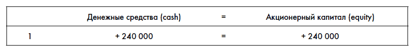 1. Владельцы вложили в компанию 240 000 руб. наличными.