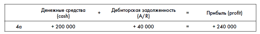 4. Продали половину товаров за 240 000 руб., получив 200 000 руб. наличными и выдав товаров в кредит на 40 000 руб.