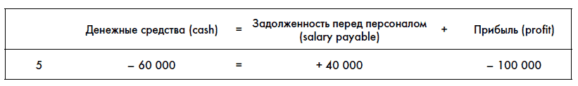 Итак, мы должны нашим работникам 100 000 руб. Деньгами мы им заплатили 60 000 руб, т. е. наши денежные средства уменьшились на 60 000 руб. Остаток – это наши обязательства перед работниками. Фактически они нам предоставляют кредит на сумму нашей задолженности (такие вот хорошие люди). Деньги мы им начисляли не авансом – это деньги, которые мы уже должны людям за ту работу, которую они уже для нас сделали. Это наши издержки, которые мы уже понесли в первом году. Используя принцип учета по начислению и принцип соответствия, даже несмотря на то, что часть денег мы еще не заплатили, всю сумму (100 000 руб.) мы должны списать в наши издержки: