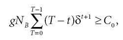 Поскольку суды представляли интересы членов каждого из сообществ, предположим, что выигрыш для суда сообщества – это чистая дисконтированная стоимость суммы выигрышей для живых членов сообщества (т. е. членов когорт 0 к моменту T)[313]. В этом уточнении присутствуют две посылки. Во-первых, выигрыши всех членов сообщества имеют равный вес в целевой функции суда. Это, конечно, верно не всегда и не везде, поэтому такое положение дел будет использоваться в качестве эталонного случая. Во-вторых, суды не заботятся о благосостоянии будущих членов и не уважают честь коммуны. Ослабление этой посылки лишь усиливает излагаемые здесь результаты[314].