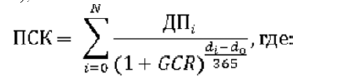 ДД – сумма i-го денежного потока (платежа) по кредитному договору. Разнонаправленные денежные потоки включаются в расчет с противоположными математическими знаками;