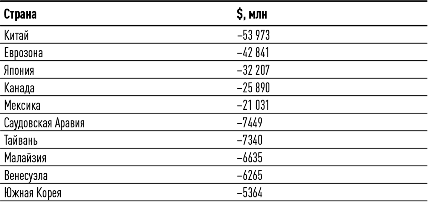 Таблица 4. Страны (объединение стран), с которыми у США наибольший дефицит торгового баланса