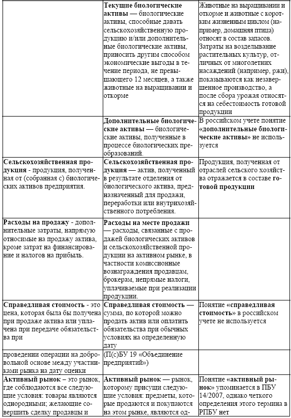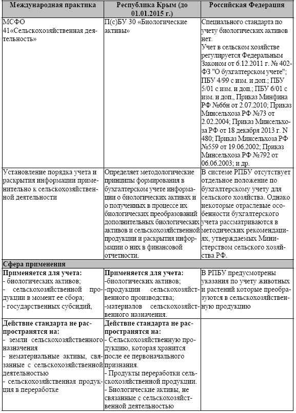 Сравнительный анализ методики учета биологических активов по МСФО, в Республике Крым (согласно украинским П(с)БУ) и в России