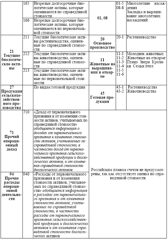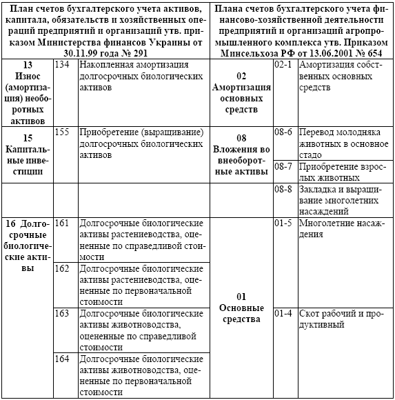 Соответствие счетов для учета биологических активов и сельскохозяйственной продукции Республики Крым и Российской Федерации