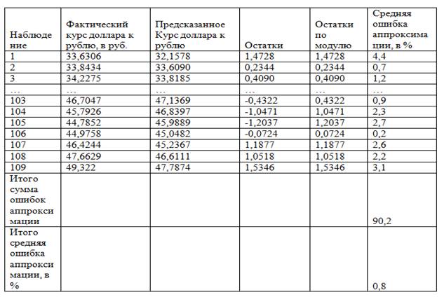 Таблица 3.6. Оценка средней ошибки аппроксимации, в %