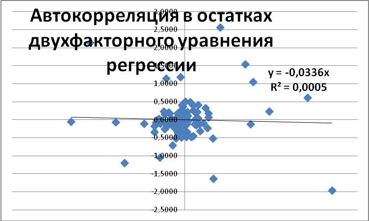 Таблица 3.7. Тестирование на автокорреляцию в остатках двухфакторного уравнения регрессии
