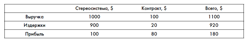 Circuit City Stores, Inc. – один из первых розничных торговцев электроникой в США, сфокусировавшихся на предложении низких цен и широкого выбора товаров. Российскими аналогами Circuit City Stores, Inc. можно назвать такие розничные сети, как «М-Видео» или «Эльдорадо». В период с 1986 по 1990 г. компания быстро росла, увеличив выручку с $705 млн до $2,1 млрд. Чистая прибыль Circuit City Stores, Inc. за тот же период выросла с $22 млн до $78 млн. Circuit City широко использовала практику продажи покупателям вместе с товарами контрактов на сервисное обслуживание. Например: компания продает покупателю стереосистему за $1000, закупочная цена которой для Circuit City Stores, Inc. составляла $900. Одновременно компания предлагает покупателю договор на техническое обслуживание этой системы на два года за $100 (покупатель вправе отказаться от приобретения этого дополнительного обслуживания). По условиям договора Circuit City Stores, Inc. обязуется раз в 6 месяцев проверять техническое состояние системы, а также устранять все возникающие в системе неполадки за свой счет в течение всего срока действия договора. Издержки компании на техническое обслуживание за эти два года составляли примерно $20. Контракты на техническое обслуживание Circuit City Stores, Inc. продавала только своим покупателям и только вместе с покупкой товара. Эту транзакцию можно отразить в таблице: