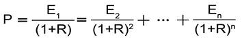 Если E = E1 = E2 = ...En, то сумма ряда стремится к значению E/R. Да, такая сложная, бесконечная сумма дробей стремится к такой простой дроби. Выкладки приводить здесь не будем, не верите – проверьте. Что интересно, получилась та же дробь, что из предыдущего абзаца. Таким образом, при условии постоянства прибыли (а об этом речь пойдет ниже) и, зная текущую стоимость, можно посчитать, какую ставку Вы будете получать. Впрочем, коэффициент Р/Е мы уже переворачивали ранее.