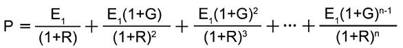 Мы знаем, что, согласно теории дисконтированных денежных потоков, стоимость компании можно выразить (пускай несколько упрощенно, но будем использовать в качестве потоков значение чистой прибыли Е) в виде бесконечного ряда: